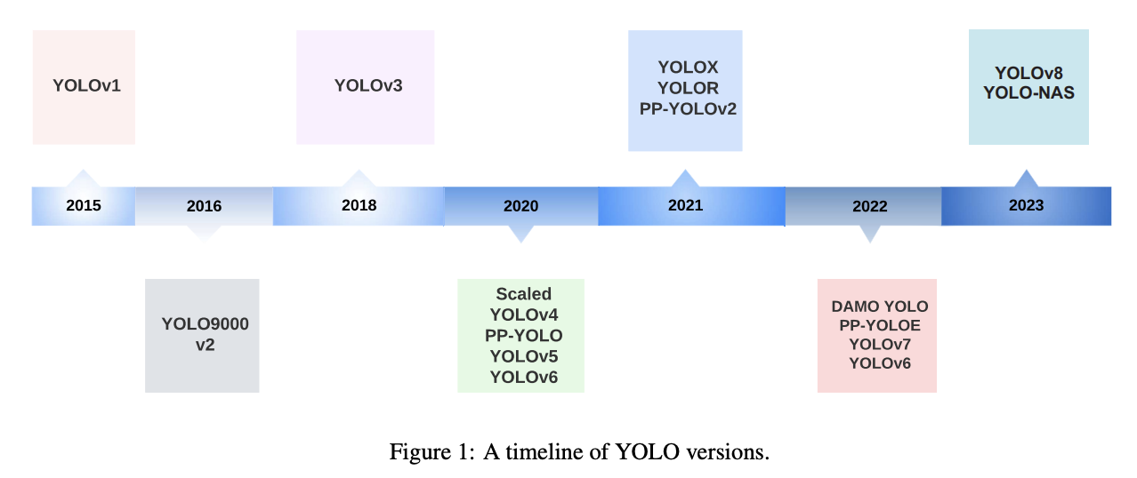 본 논문은 YOLOv1부터 YOLO-NAS에 이르기까지 YOLO 시리즈의 구조적 진화와 성능 향상을 폭넓게 다루며, 객체 탐지 분야에서 YOLO가 차지하는 핵심적인 위치를 잘 보여준다. YOLO는 초기에는 단일 CNN 기반의 빠른 탐지를 목표로 했으나, 시간이 지남에 따라 정밀도와 확장성까지 고려한 다양한 버전으로 발전해왔다.