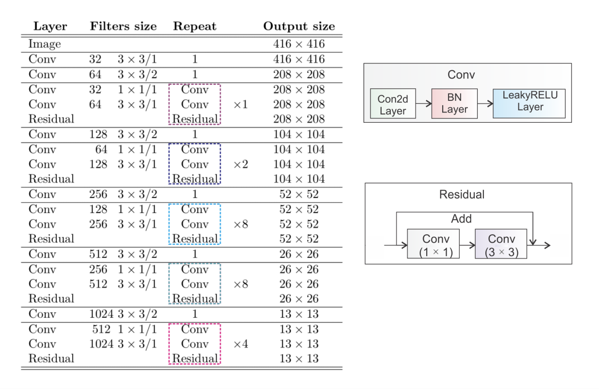 → 53개의 convolution layer + residual connections