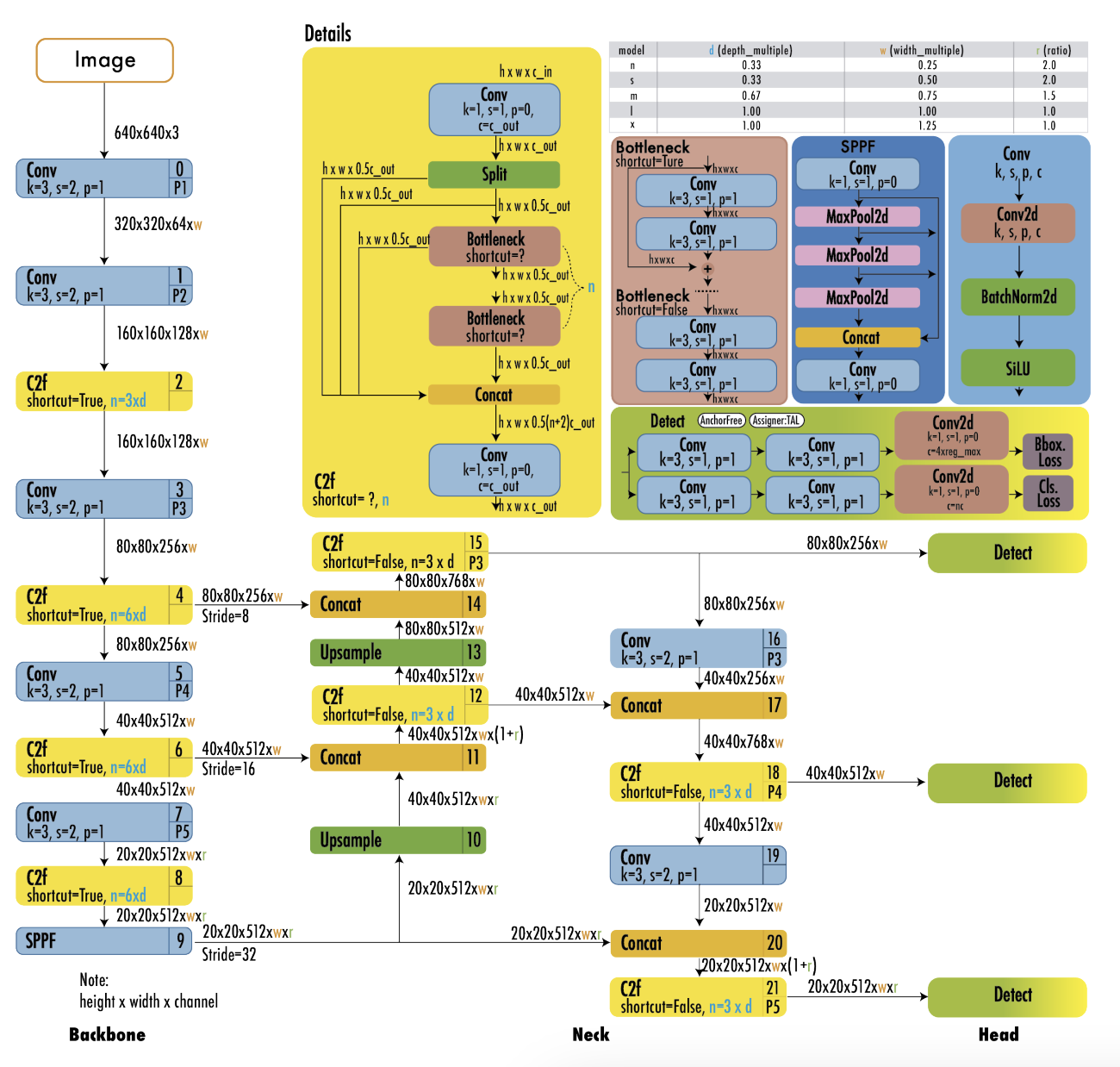 | Neck | Backbone의 여러 레벨의 특징을 통합, 정제하여 Head로 전달 | FPN, PANet, SPPF, C2f 등 |