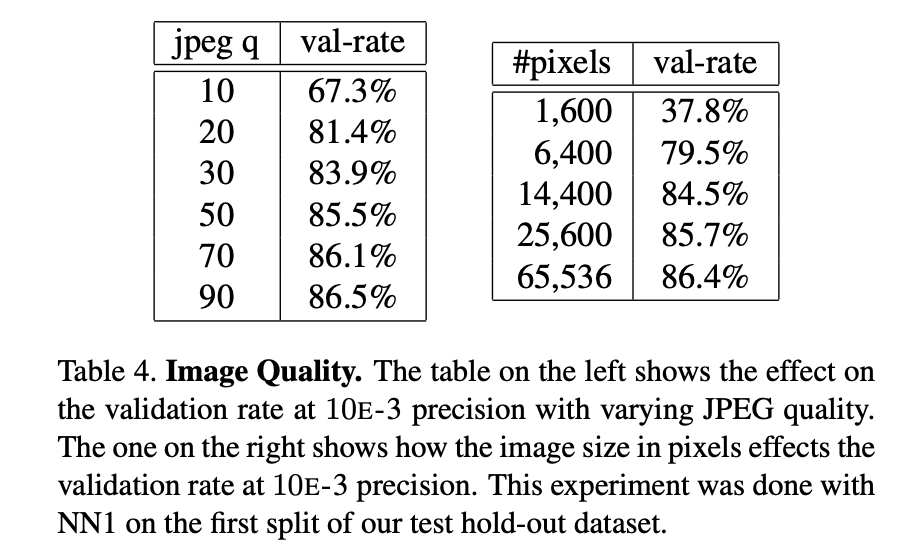 - 학습에 사용하지 않은(Disjoint Identities) 100만 장의 이미지를 통해 Hold-out Test Set 구축