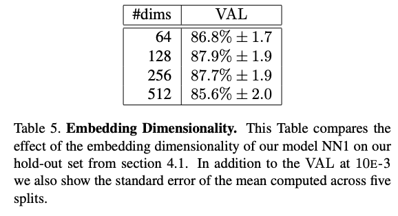 - 128 차원보다 큰 차원을 사용하더라도 통계적으로 유의미한 성능 향상은 없었으며, 오히려 학습 난이도만 높아졌다.