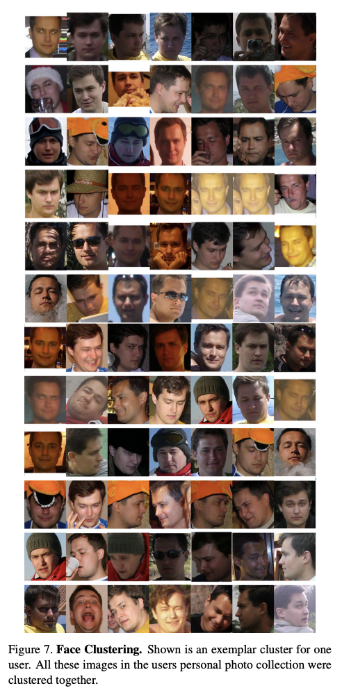 - 조명 변화나 포즈, 가림뿐만 아니라 나이 변화에도 불구하고 동일 인물을 하나의 그룹으로 정확하게 군집화