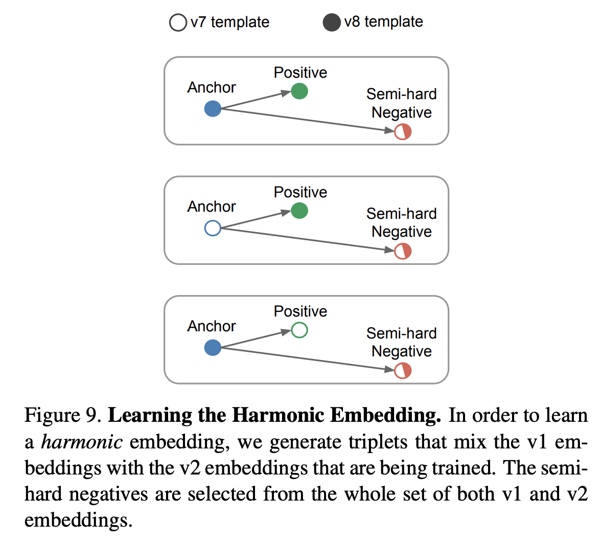 Harmonic Triplet은 Triplet을 구성할 때 서로 다른 모델(V1,V2)이 생성한 임베딩 벡터를 섞어서 Triplet을 구성 (위의 사진처럼)