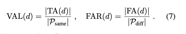 - VAL (Validation Rate), FAR (False Accept Rate) 지표 사용