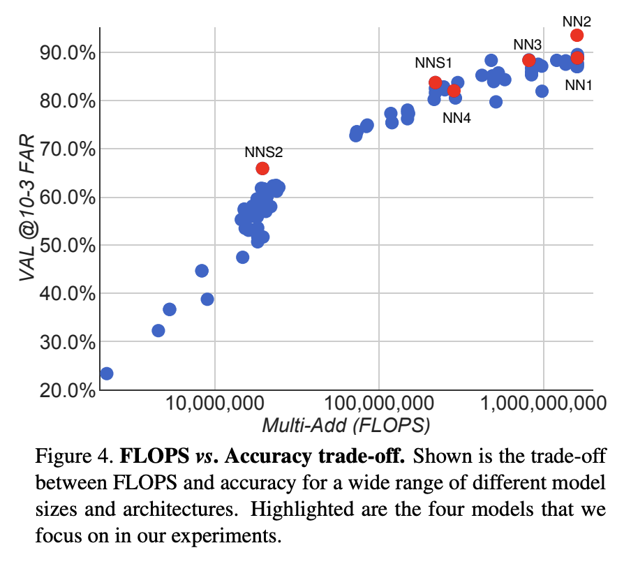 - 이를 5개의 세트(각 200k)로 나누어 교차 검증을 수행, 각 세트마다 (100k x 100k) 방대한 규모의 이미지 쌍을 비교하여 FAR과 VAL을 측정