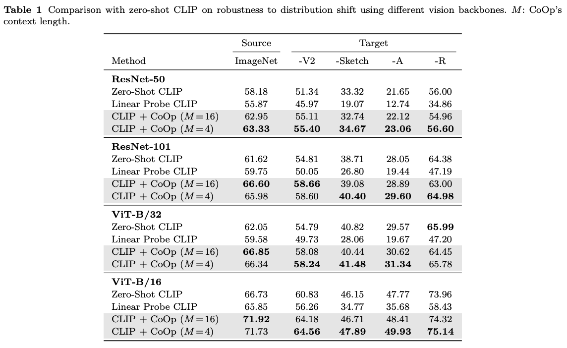 - 데이터의 클래스는 갖지만, 이미지의 스타일이 달라져도 (Distribution shift가 있어도), CoOp 방식은 CLIP은 강건성을 뛰어 넘었다.